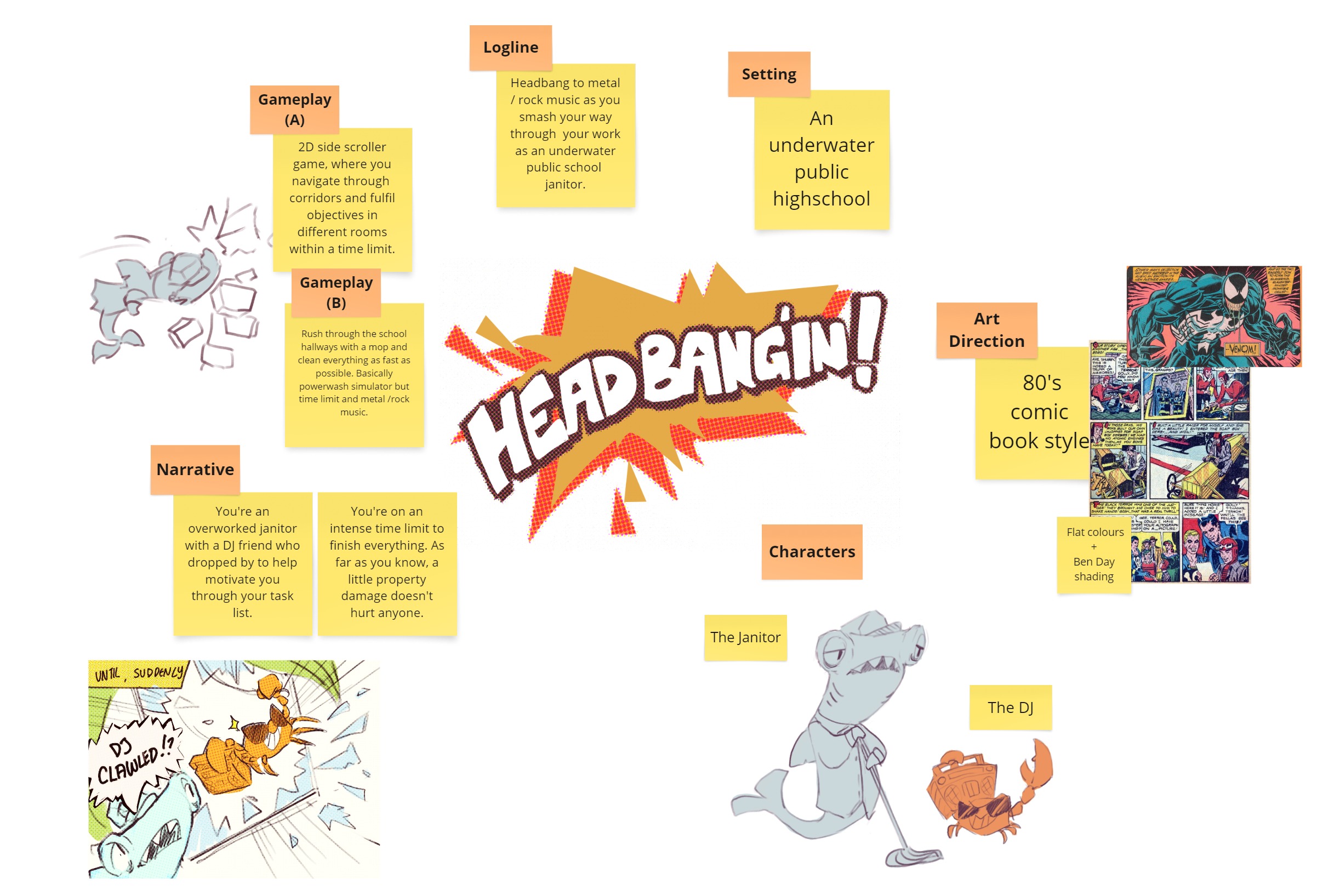 I wanted to apply an 80s comic book style with its iconic Ben Day dotted shading effect as the core art direction for the game.